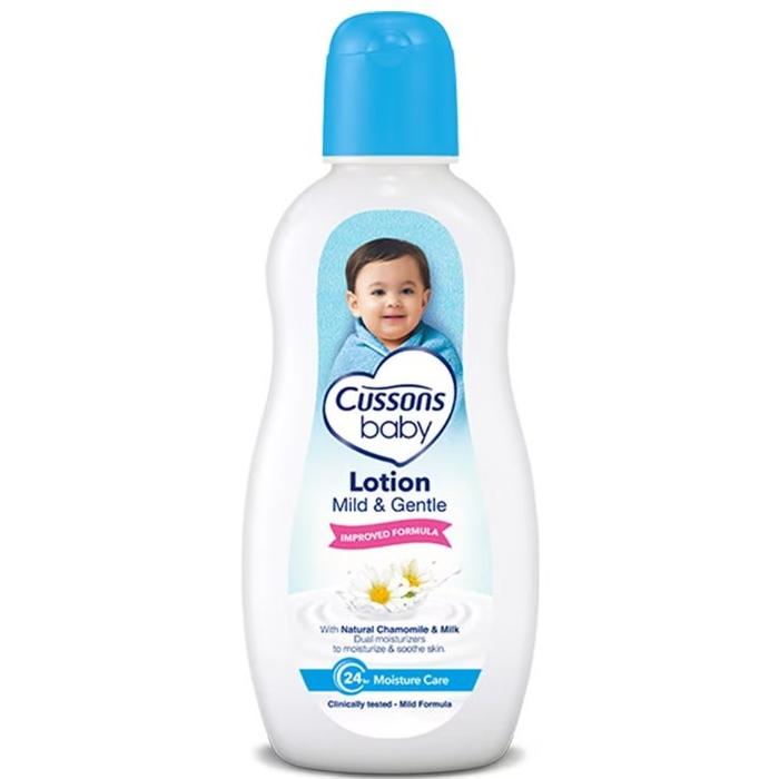 Cussons Baby Lotion adalah pelembap untuk kulit bayi yang dirancang untuk melembapkan, melembutkan, dan melindungi kulit bayi dari kekeringan. Produk ini tersedia dalam berbagai varian seperti Mild & Gentle yang mengandung Milk dan Chamomile untuk melembapkan dan menyejukkan, serta Newborn yang mengandung minyak zaitun organik dan minyak chamomile alami untuk kulit bayi baru lahir yang tipis dan sensitif. Losion ini mudah menyerap, memiliki pH seimbang, dan tersedia dalam berbagai aroma, serta dirancang khusus agar aman dan nyaman untuk kulit bayi.Penjual : Shafamart Toserba