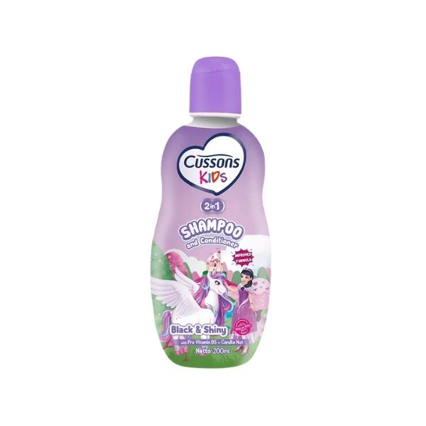 Cusson Baby Shampoo Black&Shiny (sekarang Cussons Kids Shampoo Black & Shiny) adalah sampo yang diformulasikan khusus untuk anak-anak untuk membersihkan rambut dan kulit kepala secara lembut. Produk ini mengandung Kemiri dan Pro-vitamin B5 yang membantu menutrisi, menjaga kelembapan, dan membuat rambut hitam tampak lebih sehat, lembut, dan berkilau. Sampo ini juga dilengkapi dengan wangi berries yang segar, menjaga rambut tetap mudah disisir, melindungi dari bau matahari, dan aman untuk mata karena pH seimbang serta bebas parabenPenjual : Shafamart Toserba